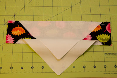 3. Sew solid triangles to lattice piece. First attach the bottom triangle and then the top centering them with the lattice piece. Just eyeball it when centering the triangles with the lattice piece and each other.